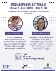 A POET convida para a Oficina Binacional de Tradução Juramentada: Brasil e Argentina, a ser realizada no dia 11 de dezembro, das 8h às 12h, por meio do Google Meet.